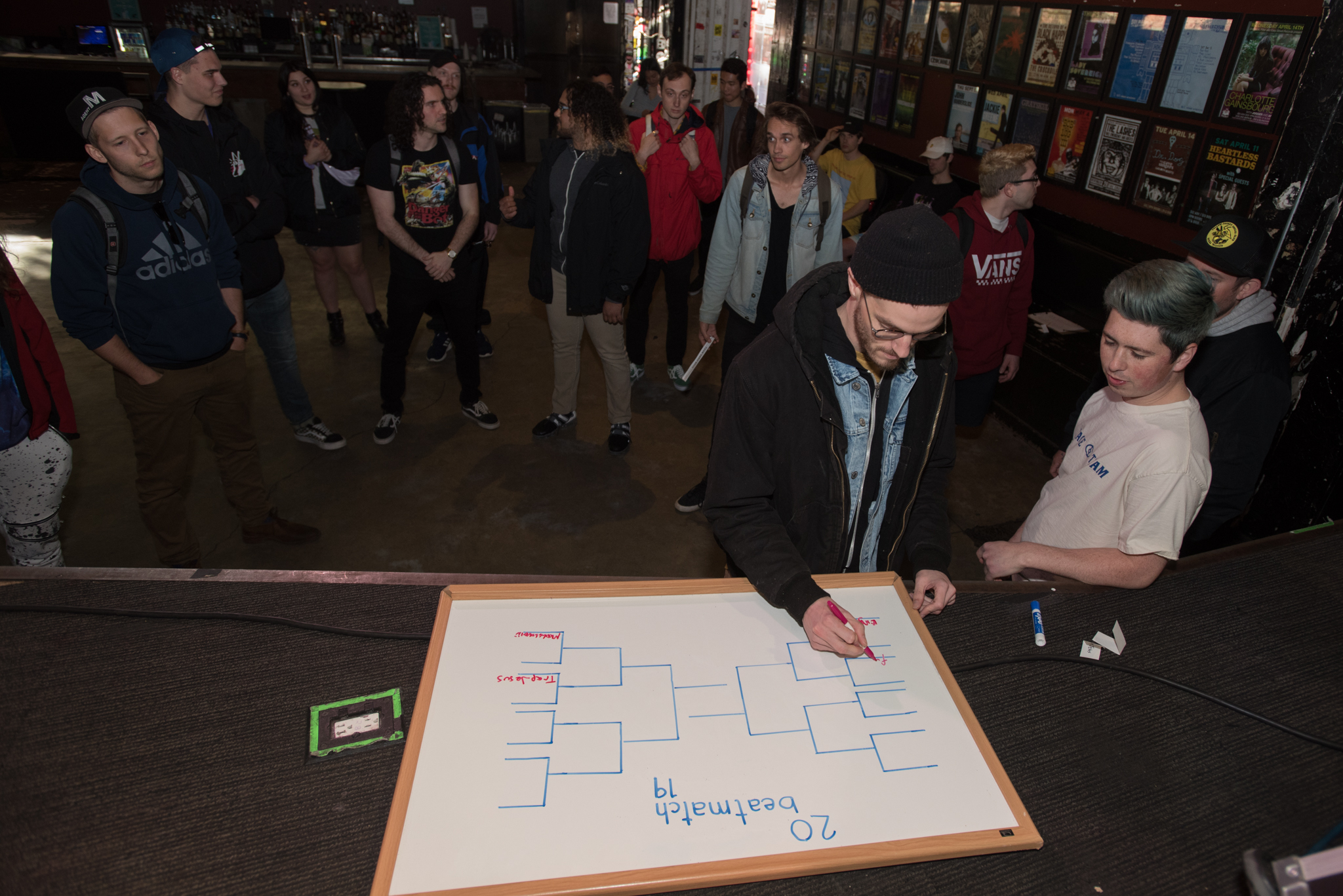 The 16 competitors gathered at The Crocodile before the event to draw their names to choose their bracket. With the brackets for the first rounds set they moved to sound check and prepped for the doors to open. The judges, Big Wild and Tyler Dopps, arrived at the venue as the pressure started to build for the contestants at soundcheck.