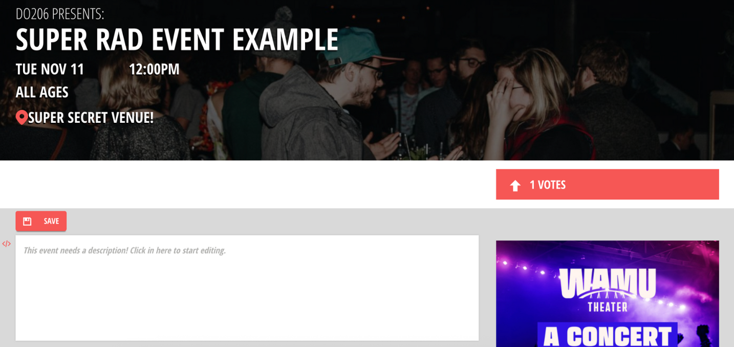 We pull listings from band and venue sites, but you can also add your own by upgrading your account. Email [email protected] to request permission. Once you’re approved, upload your event info and poster – it’s a great way to get people in the door.